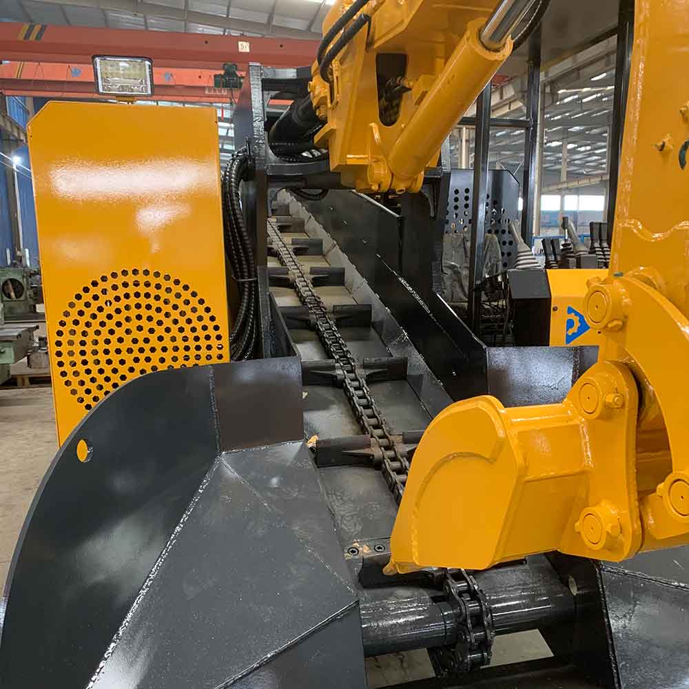 La cargadora de orugas Tipo 150 con martillo hidráulico es ideal para minería, desvío de agua, construcción de túneles de metro y otras operaciones mineras. Es altamente eficiente, duradera y apta para diversas superficies de terreno complejas. Resuelve eficazmente el problema de las dificultades de giro para las cargadoras que operan en túneles estrechos. Además, es un reemplazo ideal para la remoción manual de escoria, ya que una sola máquina sustituye el trabajo de 10 a 15 personas.